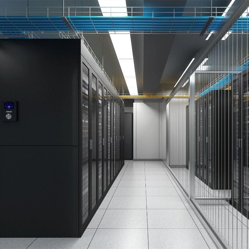 - Передовая система охлаждения испарением (DX) сочетает минимальное расстояние подачи воздуха с точным охлаждением шкафов, позволяя эффективно рассеивать тепло при высокой плотности серверного оборудования.